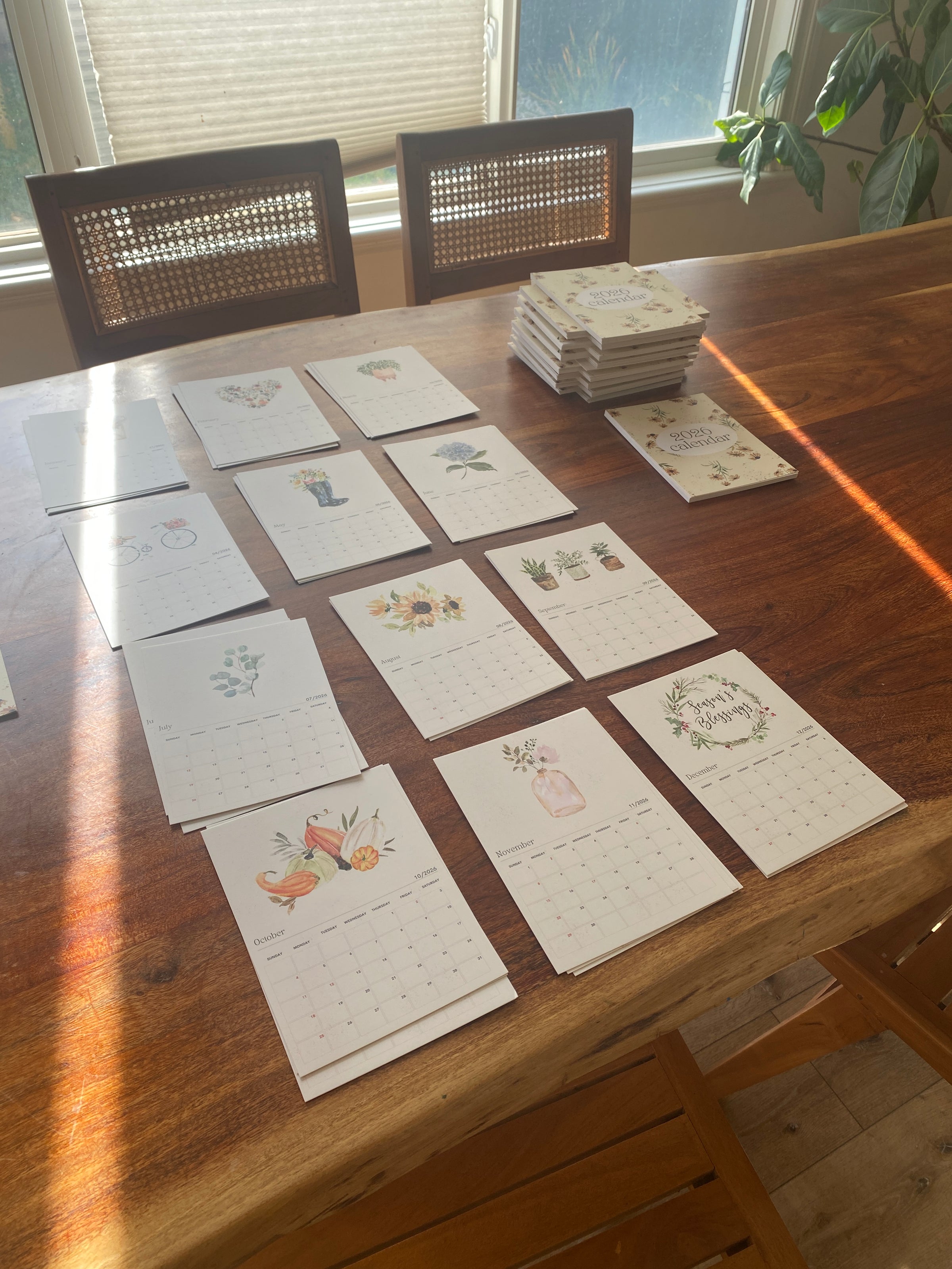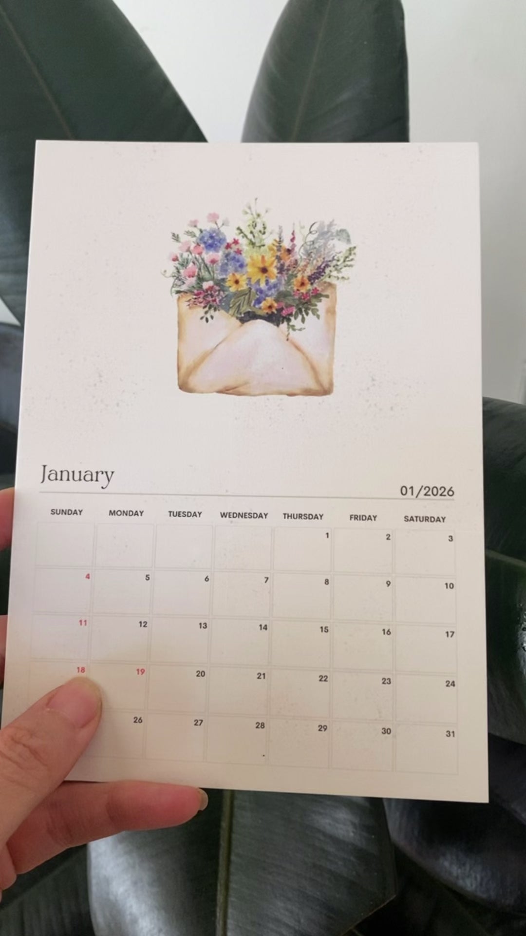 Keep track of your year with this sweet 2026 calendar, featuring delightful handpainted designs from January through December. Printed on sturdy 5x7" cardstock with a smooth matte, cream finish, it’s a charming addition to any home or workspace. Flip it over to find a “Notes” section, perfect for jotting down reminders or doodles. Display in place card holders, or in a frame, your pick.